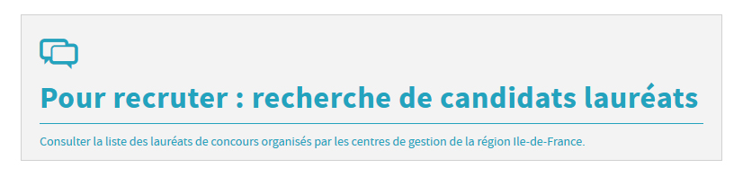 Pour simplifier votre consultation des listes de lauréats de concours organisés en Ile-de-France, les trois centres de gestion franciliens ont créé une application commune. Grâce à cet outil, vous pouvez consulter les listes et envoyer vos offres aux lauréats qui n’ont pas encore été nommés.