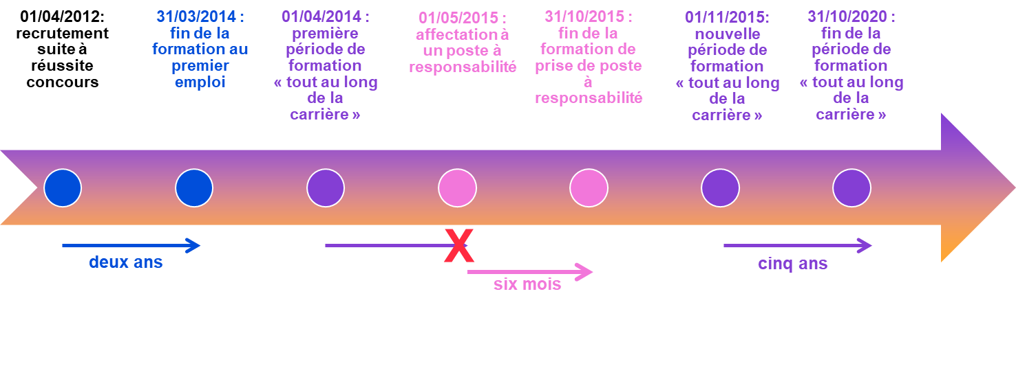 En revanche, la période de formation au premier emploi et celle de la formation de prise de poste à responsabilité peuvent se chevaucher. Aucun report de la période de formation au premier emploi n’est prévu par les textes.